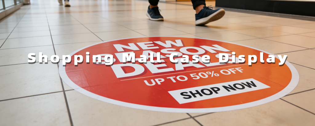 The floor stickers used a high-contrast black, white, and red color palette, with bold, large-font text highlighting core messages such as “NEW SEASON DEALS” and “Grand Opening Sale”, and emphasizing the discount strength of “UP TO 50% OFF”. The circular and oval shapes ensured visual focus while using soft lines to complement the mall’s clean, upscale aesthetic, avoiding the cheap feel of traditional promotional materials.
